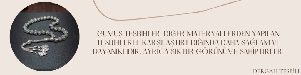 - Dayanıklılık: Gümüş, diğer materyallerden yapılan tesbihlere göre daha dayanıklıdır. Bu, uzun ömürlü bir ibadet aracı arayan kişiler için önemlidir.