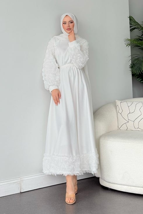 Ayrıca, hafif bir ihtişam arayanlar için abiye modelleri arasında saten abiye tasarımları öne çıkar. Parlak yüzeyi sayesinde ışığı nazikçe yansıtan bu kumaş, minimal kesimlerle birleştiğinde göz yormadan sofistike bir şıklık sunar. Bu özel günde görünümünü tamamlamak isteyenler içinse şallı tesettür abiye kombinleri idealdir. Şal ile elbise arasında yakalanan ton uyumu, görüntüye hem bütünlük hem de rafine bir duruş kazandırır.