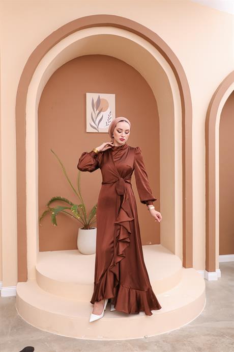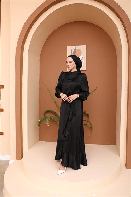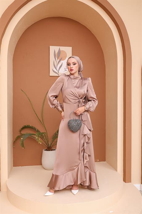 Fırfırlı abiye elbiseler, dökümlü kumaşların hafifliğiyle bütünleşerek adeta rüzgarın hafif dokunuşlarını anımsatır. Her bir fırfır tabakası, hareket halindeyken etkileyici bir dansı anımsatır. Bu tasarımlar, sade ve zarif bir tarzı benimseyen tesettürlü kadınlar için özel bir seçenektir.