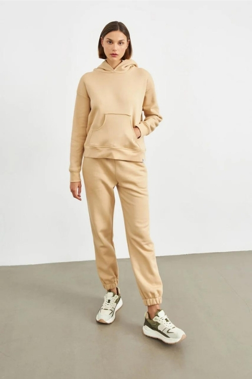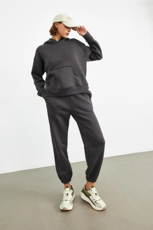 Kapüşonlu sweat, modern kadın giyiminde sportif ve şık bir tarzı birleştirerek önemli bir rol oynar. Genellikle hoodie olarak da adlandırılan bu sweatler, kullanıcısına sıcaklık sağlamakla birlikte kapüşon detayıyla özgün bir görünüm sunar. Hem rahat hem de şık kombinlere uyum sağlamak isteyen kadınların tercihidir. Kapüşonlu sweat genellikle geniş bir renk yelpazesi ve farklı tasarım detayları ile sunulur. Fermuarlı veya fermuarsız modeller arasından seçim yapmak mümkündür. Ayrıca baskılı veya nakışlı kapüşonlu sweatler, kullanıcının tarzını yansıtan özgün seçenekler sunar. Günlük giyimde jean veya tayt kombinleriyle kullanılabileceği gibi, şık bir görünüm elde etmek için eteklerle veya şortlarla kombinlenebilir.