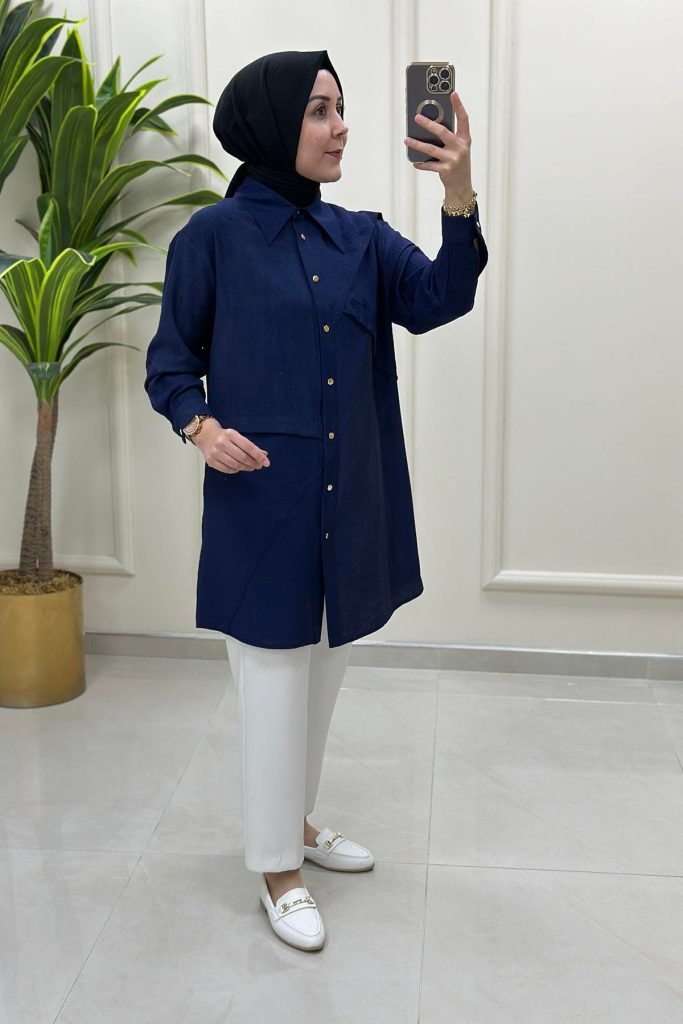 - Tesettür Gömlek Tunik Modelleri: Tesettür gömlek tunik modeli, ofis stilinin vazgeçilmezi haline gelmiştir.