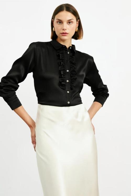 Saten eteklerin özü, yumuşak ve parlak dokularıyla klasik bir şıklığı temsil eder. Ancak günümüz modasında, tasarımcılar bu klasik parçayı modern trendlerle birleştirerek daha çağdaş ve iddialı bir görünüm elde etmeyi başardılar.