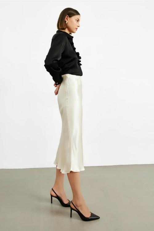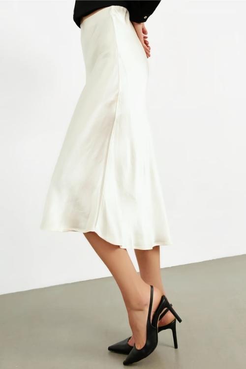 Saten etek, kadın giyim modasında klasik çizgilerin modern dokunuşlarla buluştuğu ve stil sahibi kadınların gardıroplarını süslediği bir moda ikonu haline geldi.